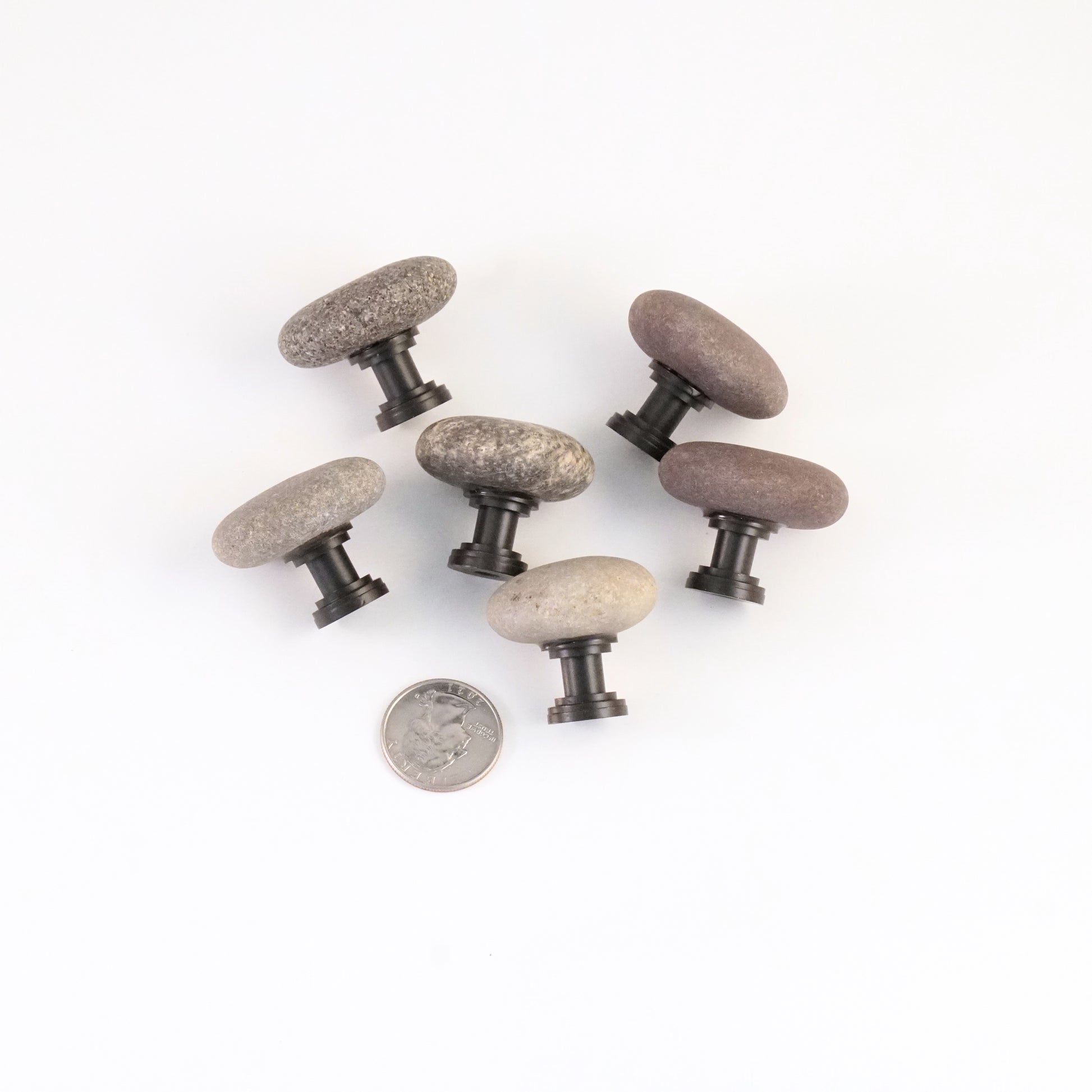 Six wonderful mixed natural beach rocks set on Oil Rubbed Bronze stems. These stones average 1 1/2 inches wide and have been drilled and set with an internal stem for lasting strength.