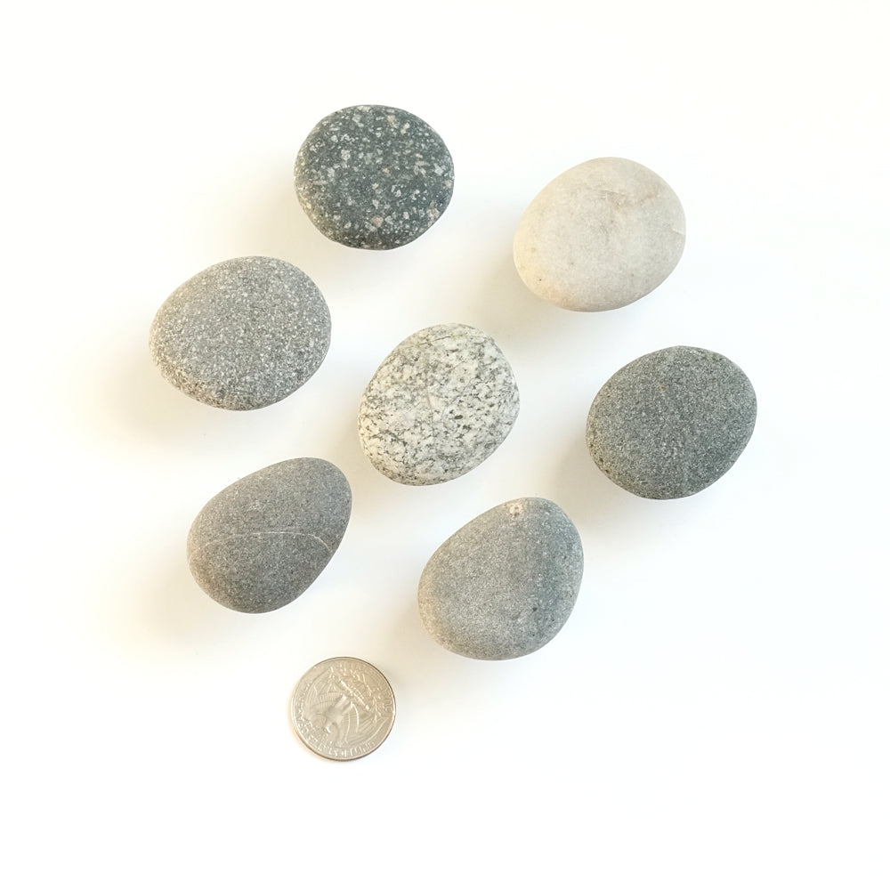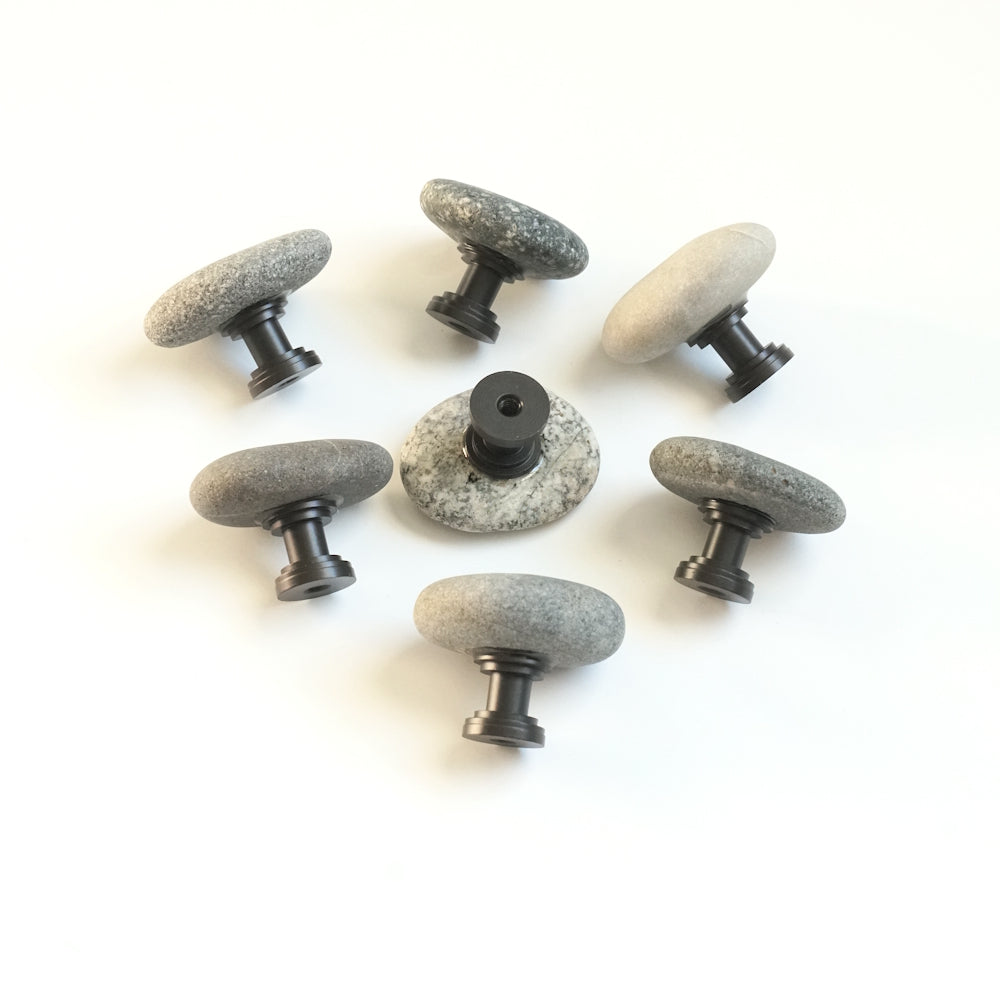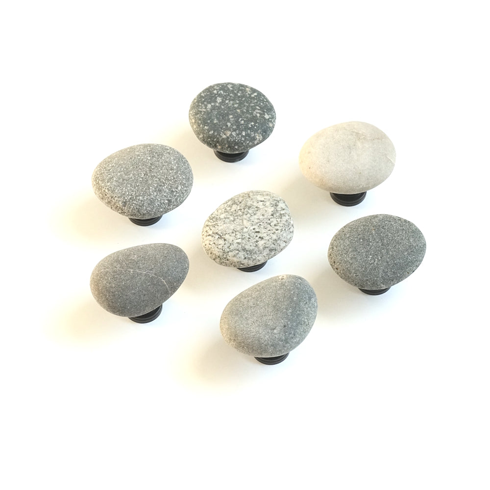 Set of 7 Mixed Cool Beach Stone Cabinet Knobs - Ready to Ship