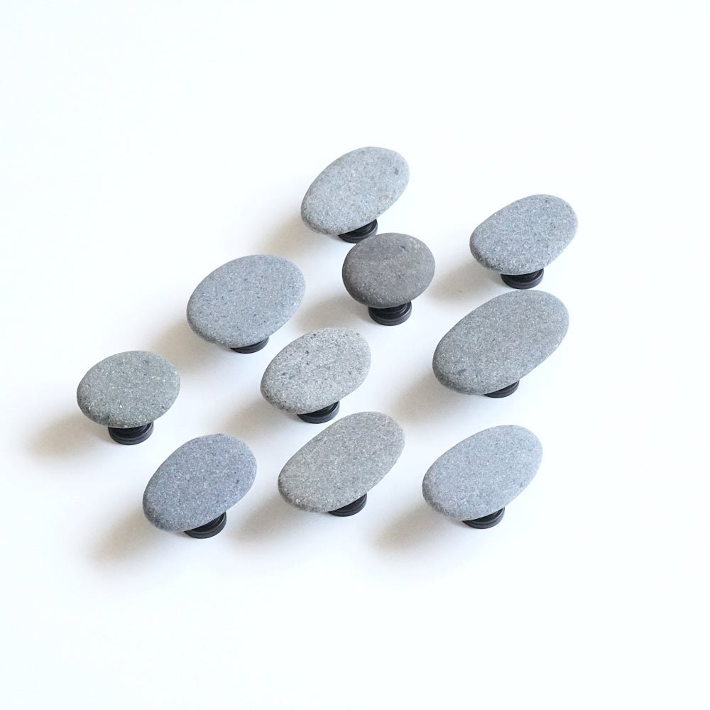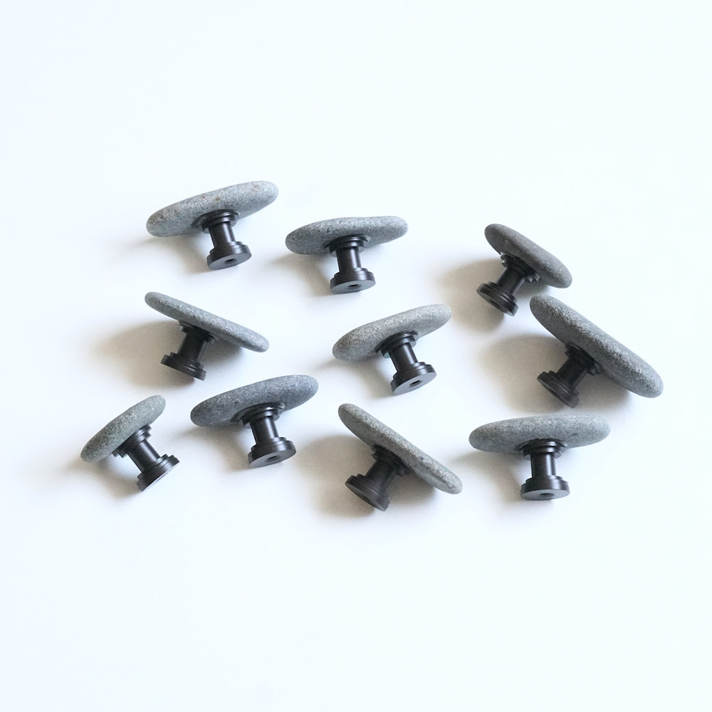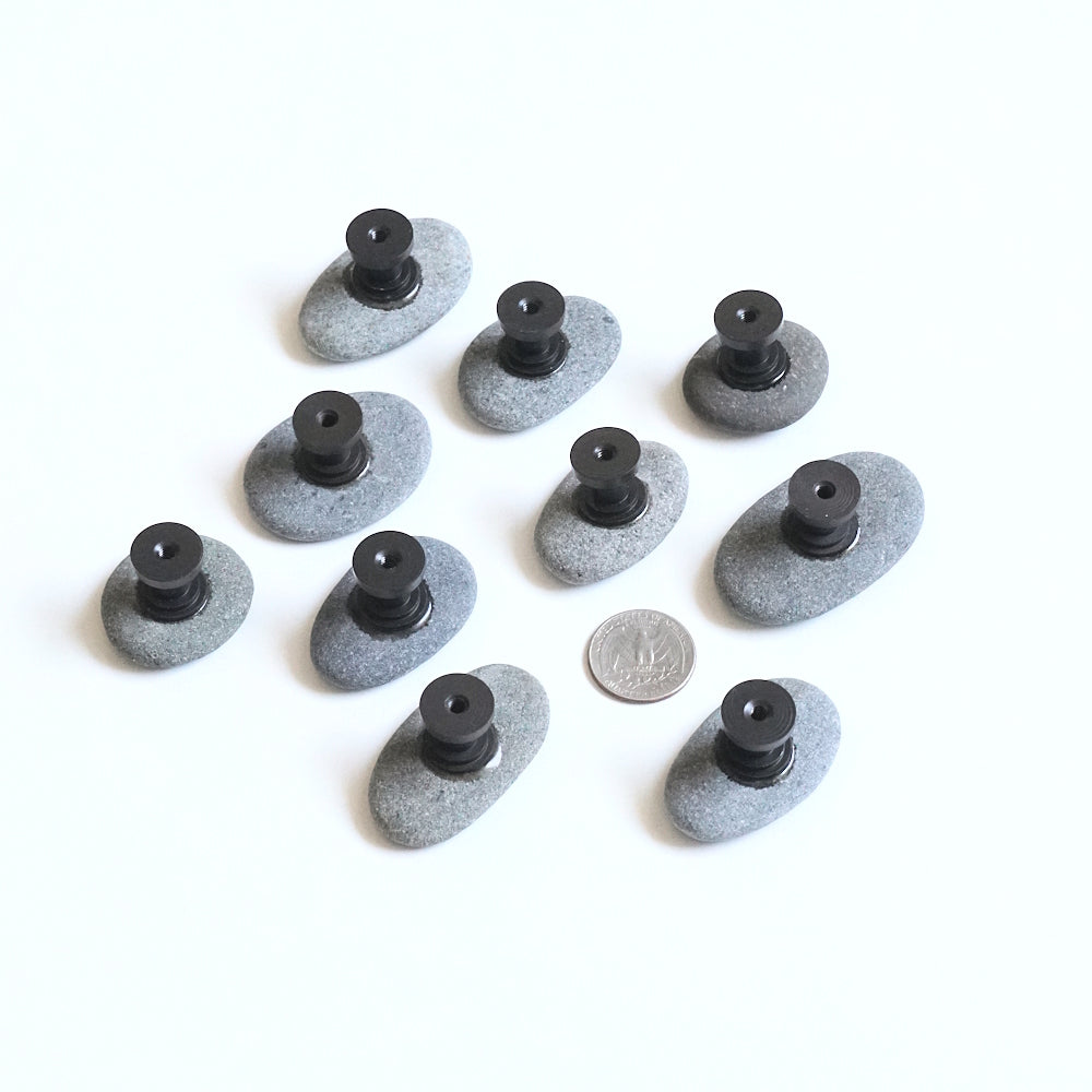 A set of 10 mixed-size and shape flatter gray beach rocks set on Oil Rubbed Bronze stems. These are the exact stones you'll receive, and they are ready to ship.