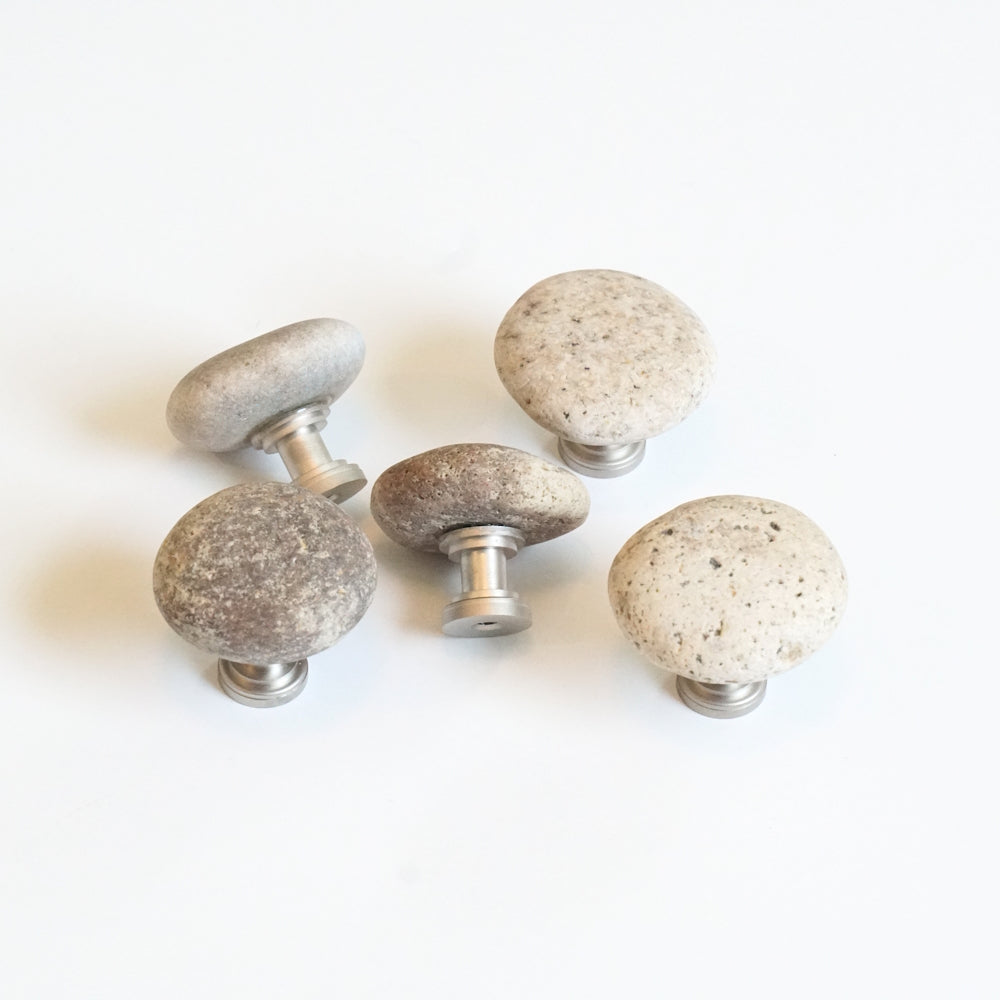 Five medium spotted stones set on Satin Nickel stems. These stones average 1 3/4 inches wide and are the exact ones you'll receive.