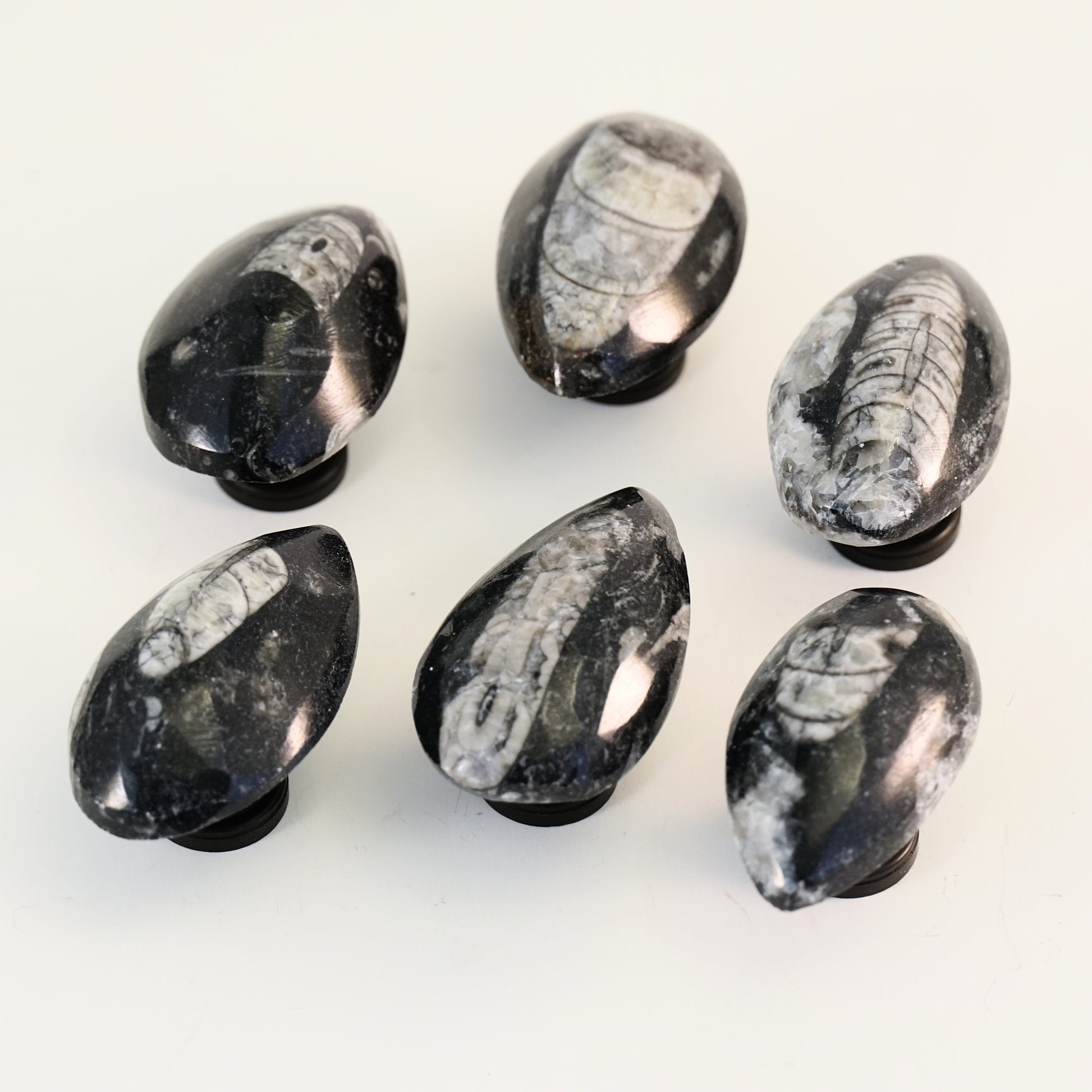 Six large polished and shaped Orthoceras Fossils set on Oil Rubbed Bronze stems. These are the exact stones you'll receive and they are ready to ship.