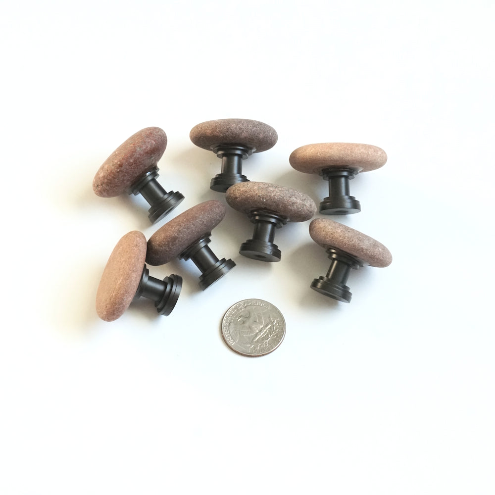 Fabulous Red & Pink Beach Pebble Cabinet Knobs - Set of 7 - Ready to Ship