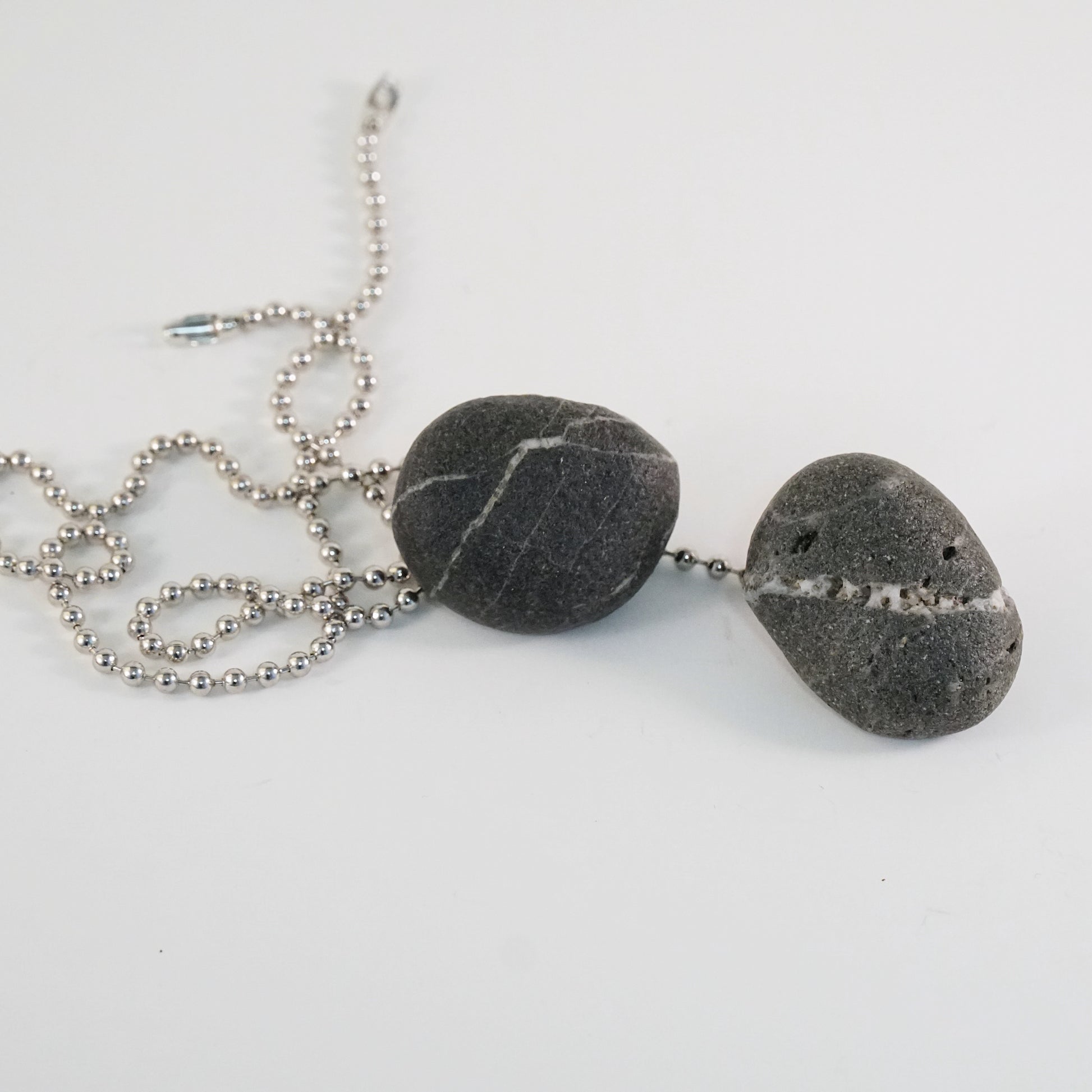 Wishing Rock pair with fabulous white markings and stripes, drilled and set with standard chrome/silver light and fan pull ball chains. The chains are 12" long and can be easily shortened.