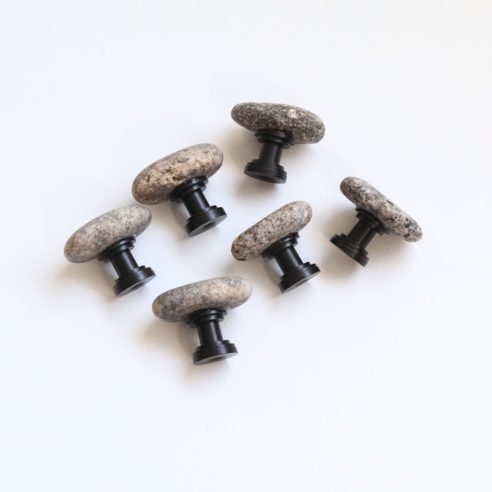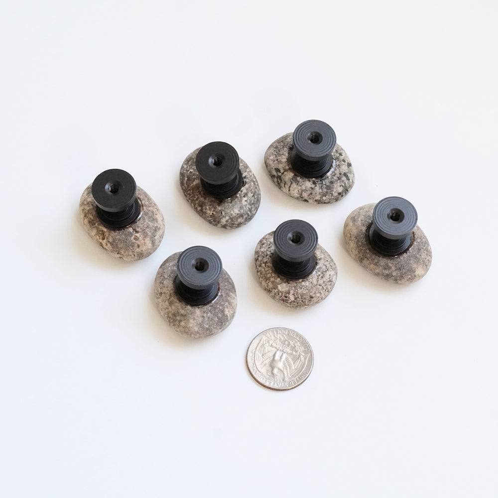 Six lovely smaller spotted brown rocks set on Oil Rubbed Bronze stems. These stones average 1 1/4 to 1 1/2 inches wide and have been drilled and set with an internal stem for lasting strength.